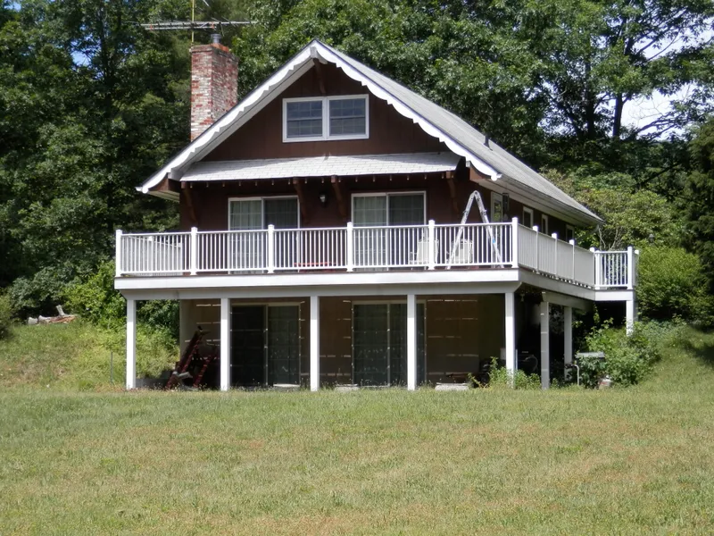 Private 8+ acres of open & wooded land. Roomy chalet with recent updates including roof, windows, carpeting, kitchen and baths. Lots of natural light, fireplace & wood burning stove, loft area incl 2 spacious rooms, basement w/walkout rec room, laundry, bath & utility space. Det oversized garage w/woodstove, walkup stairs to overhead storage, paved drive. Mtn views near National Forest!