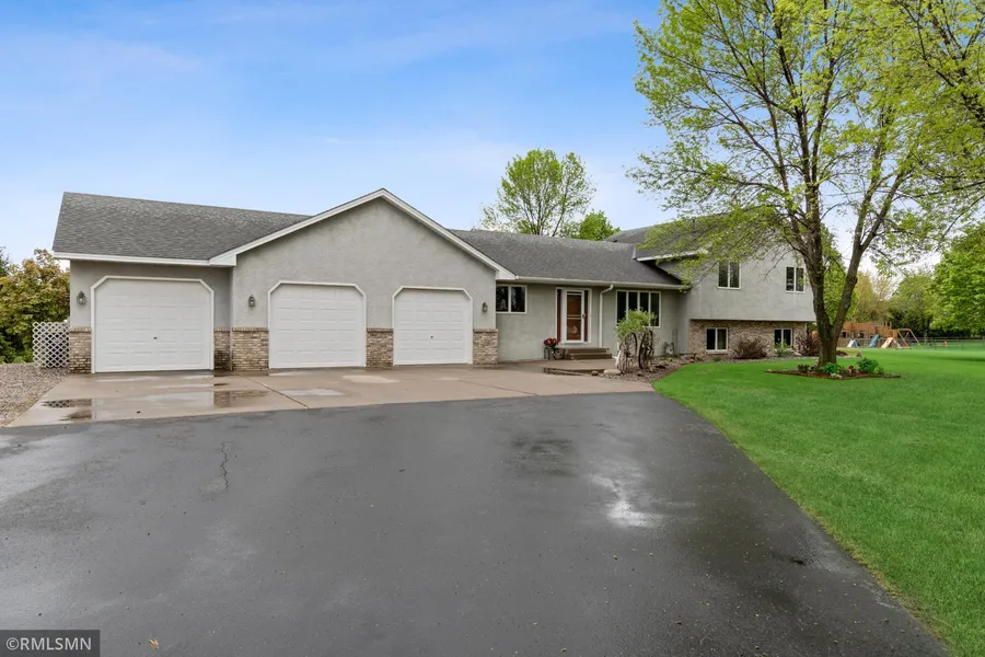 Meticulously maintained acreage property located within the Monticello School District. Great storage with a three car attached and detached garage. Both garages have 220 wired. The upper level offers three bedrooms, full bathroom, private 3/4 master bathroom and a master walk-in closet. Vaulted main level ceilings provide a spacious feel. Convenient center island for food preparation and entertaining. The dining room walks out to a cozy sunroom for ultimate relaxation and conversation. Soak up some sun on the new deck attached to the sunroom. The family room awaits fun entertaining with a pool table and a wood burning fireplace. A fourth bedroom, 3/4 bathroom and laundry room completes the third level. Unfinished fourth level provides an opportunity for additional finished area or storage. Enjoy the beautiful yard with perennial gardens, an apple tree and a great view of the pond in the back of the property. Come take a look at all this property has to offer.