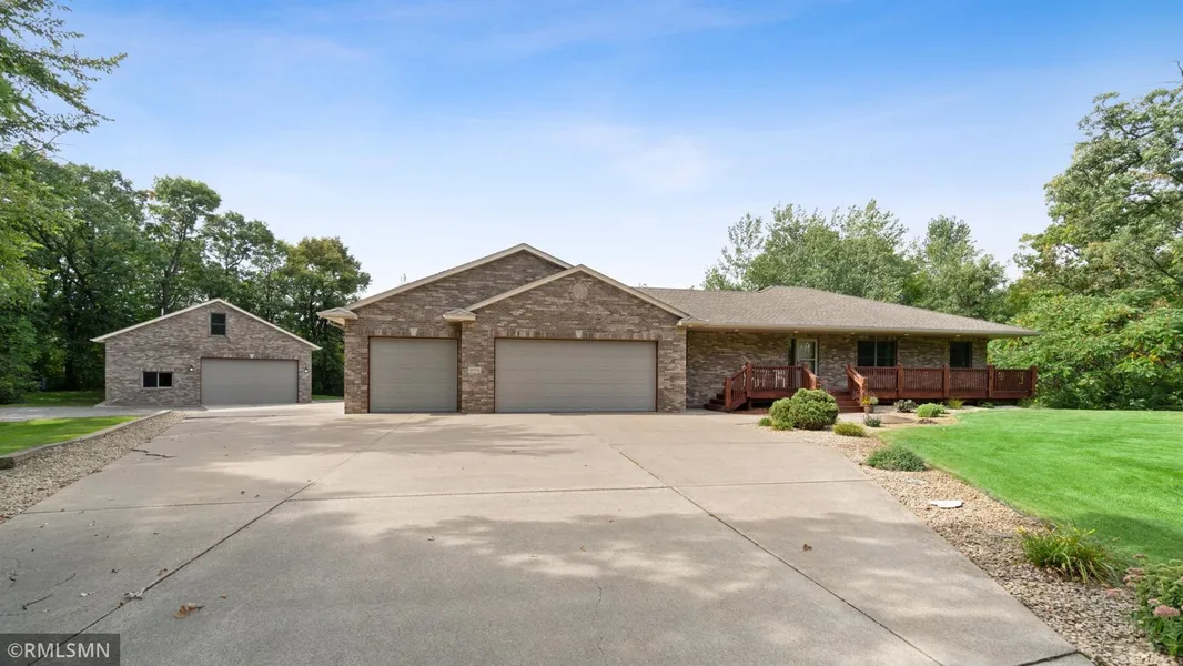 Stunning one owner custom built rambler on 3.36 acres with a detached garage. You will not want to miss this one. Home is located on a cul-de-sac in a neighborhood setting - Becker School District. A great mix of trees for privacy, and level yard with a stamped concrete patio and fire pit. The attached garage has epoxy floors, hot/cold soft water, Heat/AC and floor drains. The additional detached garage(40x35) with brick accent has a 10'(H) double door and 12' ceilings. It has a second story (16x40), heat (in-floor and woodstove) and A/C. Tons of Possibilities! The accents in this home are stunning. Custom touches throughout. Bright and open floor plan. Large master suite with his/her closets and private bathroom with large jetted tub. The lower level is the perfect spot for entertaining. It features stone accents, built-ins and a large bar with granite. Shows like a model home. Laundry ...