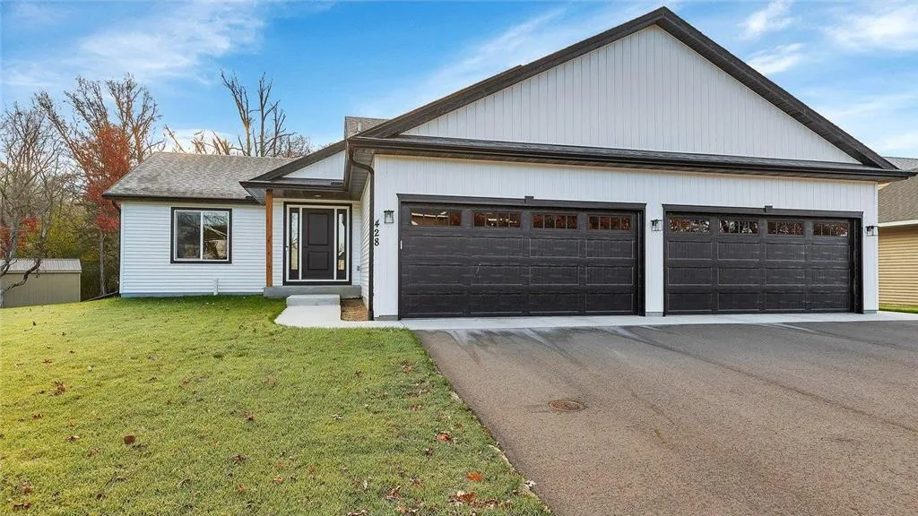 This stunning newly built home, constructed in 2023, showcases beautiful woodwork and the latest finishes throughout such as stone countertops, upgraded lighting, hardware and appliances! The backyard is surrounded by a tranquil wooded area, providing a peaceful escape with no backyard neighbors. The 4 stall wide garage is a rare find, offering plenty of space for cars, toys, and more. Upstairs, you'll find 3 bedrooms, including a luxurious Master Suite with an upgraded walk-in closet and Master Bath. Additionally, there are 2 more floors that can be customized to your liking, potentially adding 2 more bedrooms. You'll also find a pre-plumbed bathroom on the first unfinished level making it easy to add that third bathroom. This home features a gorgeous stone fireplace, creating a cozy and inviting atmosphere. Situated in a great neighborhood on a dead end street, this home is conveniently close to Hwy 10 and the metro area. This house is a must-see before it's gone!
