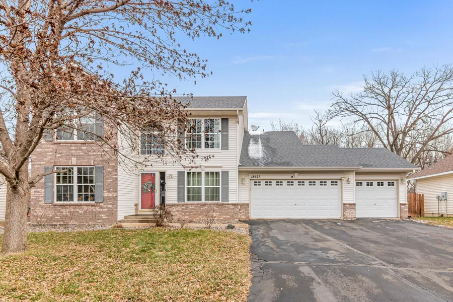 Welcome to this stunning 2-story home in the desirable Trout Brook Farm development in Elk River, MN. This home features an updated kitchen with new black stainless steel luxury appliances and luxury vinyl plank flooring throughout the main level. Upstairs, you'll find 4 bedrooms, including a primary bedroom with an en suite bathroom and walk-in closet. The finished basement includes a hobby room, spacious family room, and 2 utility storage rooms, perfect for extra living space. Enjoy the private fenced-in back yard that backs up to woods, offering views of wildlife and deer. Relax on the back yard patio and embrace the tranquility of nature right outside your door.
