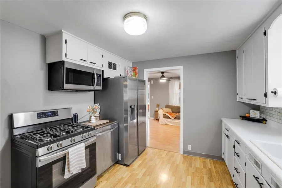 Super cute and clean on large lot w/ fenced in yard, spacious kitchen, pine entry porch, large dinner room and main floor living , stainless steel appliances, newer lower level flooring, newer furnace, front door and garage door, large deck, huge back yard, newer landscaping, and parking area. Easy to show! A Must See, Turn Key Rambler