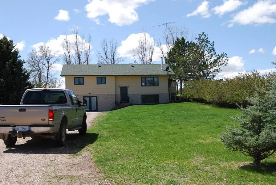 Nice bi-level home on 156+ acres approximately 3.5 miles SE of Hay Springs. A nice entryway w/a wide stairway leads to the upper level featuring a nice size living room w/woodstove which flows into the dining room and efficient kitchen w/solid oak cabinets, all appliances & access to the deck and fenced backyard. The main bath features a large step in shower which functions as a regular shower or as a steam shower, a large vanity, linen closet & nice window allowing for natural light plus three decent size bedrooms. The lower level has a large family room, 3/4 bath/laundry with tiled flooring, storage under the stairs and a large mudroom w/lots of extra space. All wood windows through out the home, an architectural roof plus a nice yard w/underground sprinklers. Nice tree rows and hedges. There is a very large fenced garden plot in addition to a chicken house w/fenced yard & frost free h...