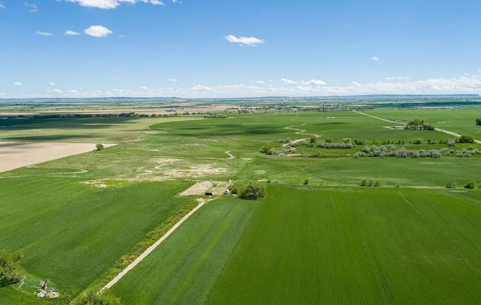 This contiguous, 1,553 deeded acre farm is located approximately one mile north of Lyman, Nebraska. There are 1,240 irrigated acres with water provided from four irrigation wells which are adjudicated from 700 GPM to 1,200 GPM with static water at approximately 15 feet. In addition, surface water rights are provided from three sources: the Gering-Ft. Laramie Irrigation District for 856 irrigable acres; the Mitchell Irrigation District for 24 irrigable acres; and two appropriations from Horse Creek for 5.07 CFS. Six low-pressure pivots irrigate 800 acres while the remaining 440 acres are flood-irrigated using gated pipe. Horse Creek flows along the southern boundary of the property for approximately one mile, sheltered by mature cottonwood and ash trees. Improvements include three homes, an 80x125 red iron hay barn with 20-foot side walls, and a 60x120 pole barn with 16 foot side walls. I...