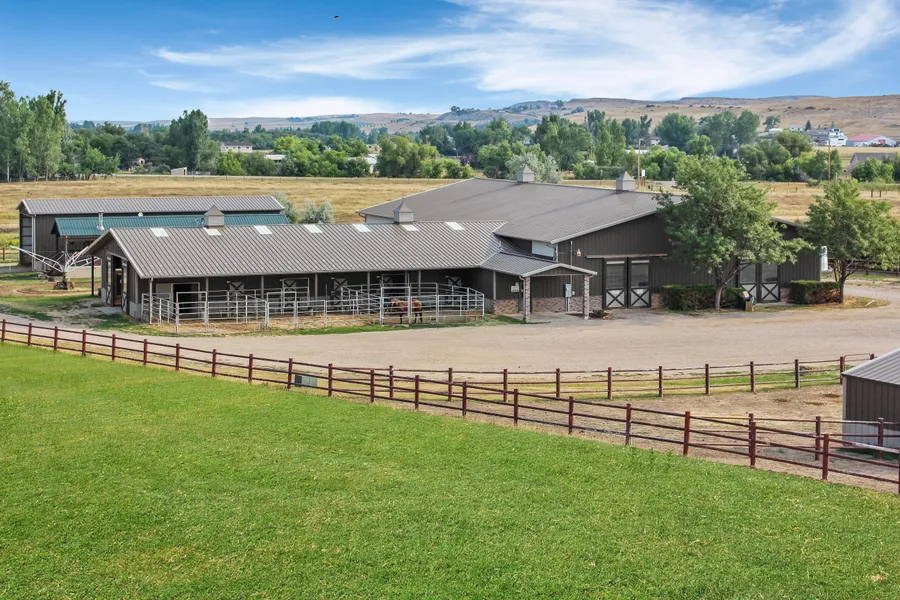 Find your perfect melding of western lifestyle, convenience and luxury at the one-of-a-kind YO Equine Ranch. Whether your inner enthusiast seeks high end horse breeding in a celebrated polo community, farming 80+/- quality irrigated acres, or hunting and fishing your own stretch of riparian covered Little Goose Creek, there is plenty to satisfy on this 103+/- acre property. Escape the venture of property errands in the comfort of the 6 bedroom, 5.5 bathroom main home, perched perfectly for 180-degree views of the Big Horn Mountains and 360-degree views of the entire estate. This custom home is well appointed with cherry wood floors and cabinets enhancing a nice balance of formal space and more casual living with wet bars and recreational rooms. Solace for the horse maven is found in the 72x120, fully insulated riding arena providing comfortable climate for year round use. Attached to the...
