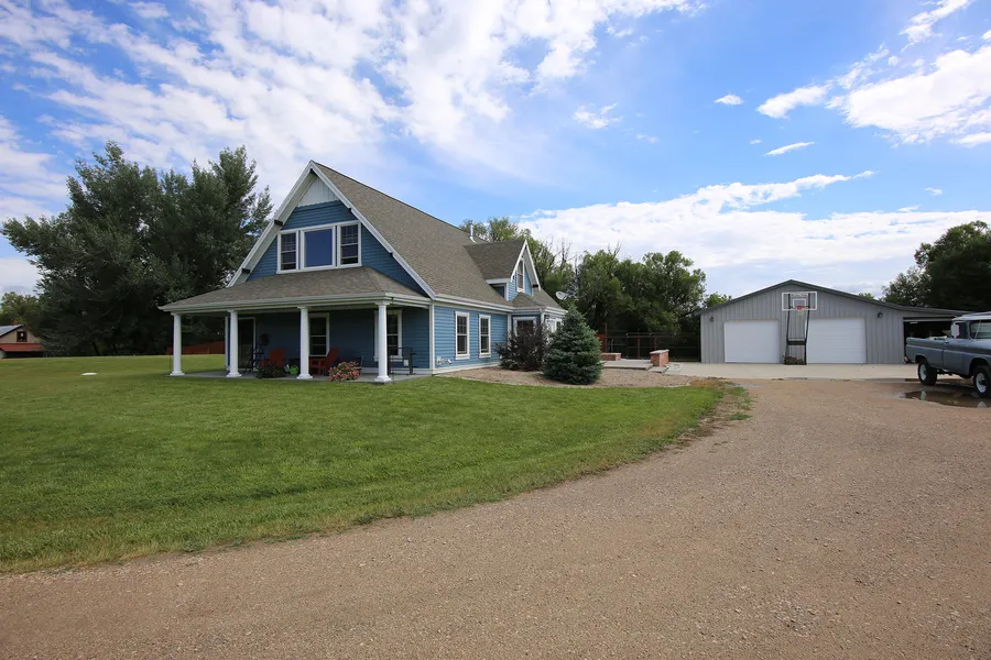 Enjoy serene mountain views from the covered front porch of this 4 bedroom, 3.5 bathroom, 1.5 story farmhouse located minutes from town. This home features in-floor radiant heat, open concept kitchen/dining and living room area, master on the main floor and an outdoor natural gas fire pit that provides warmth and comfort all year round. The second floor includes a balcony area that overlooks the living space on the main floor, 2 bedrooms, 1 bathroom, tons of natural light and an open family room with more incredible mountain views! A 2,640 sq. ft. heated/insulated shop with a game room that is perfect for additional kid space or man cave. The property also has RV parking and a separate cabin unit that is heated/plumbed for guests or spare office space.The 2.48 acres provide ample space for toys or animals with a 6 foot fence and ditch irrigation rights from Kruse Creek. You can have the ...