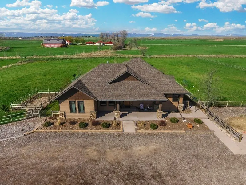 Gorgeous custom ranch style home near Goose Creek and the Wrench Ranch Commercial Park, on over 4 acres of irrigated ground. Property features a very impressive 3,800 sq ft shop with a one-bedroom apartment, 4 bays, trophy room, and 3 horse stalls. Enter the home through the custom mahogany front door to find a beautifully designed open floor plan with top end finishes throughout. The home features granite counters, custom maple and cherry cabinets, knotty alder trim throughout, and excellent access to patios with incredible Big Horn Mountain Views.. Owners have meticulously managed the grazing and produce an average over 350 small square bales per year. See documents for property details. Covenants are available upon request. All measurements are approximate.