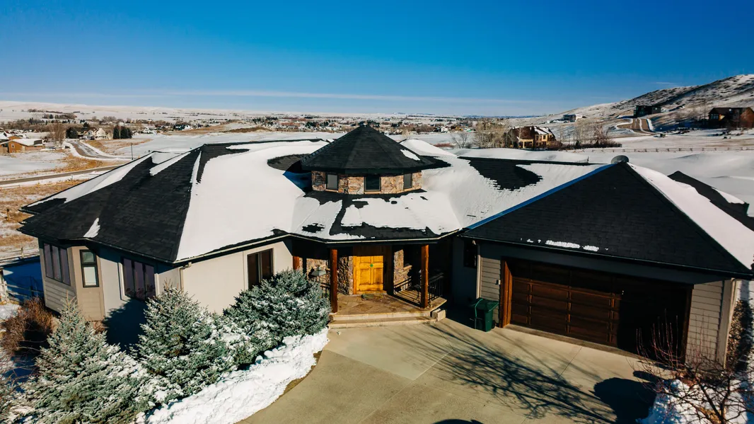 This exquisite Powder Horn home sits on a neatly landscaped, nearly a 1 acre lot with gorgeous views of the Big Horn Mountains and the golf course. Upon entering the front door, you are drawn to the high ceilings of the foyer leading to an open concept living room and kitchen with two wet bars for entertaining. Off of the living room there is a fully enclosed porch for summer days, a conservatory, office/ bedroom, and large primary suite with an en suite bathroom and two walk in closets. The lower level features two bedrooms, two bathrooms, a movie theater, a library, and a family room. Plenty of space for entertaining. Outside, you will see a beautiful tiered lawn with a garden, vineyard and apple orchard. Twenty minutes to downtown Sheridan and two minutes to the Powder Horn Club.