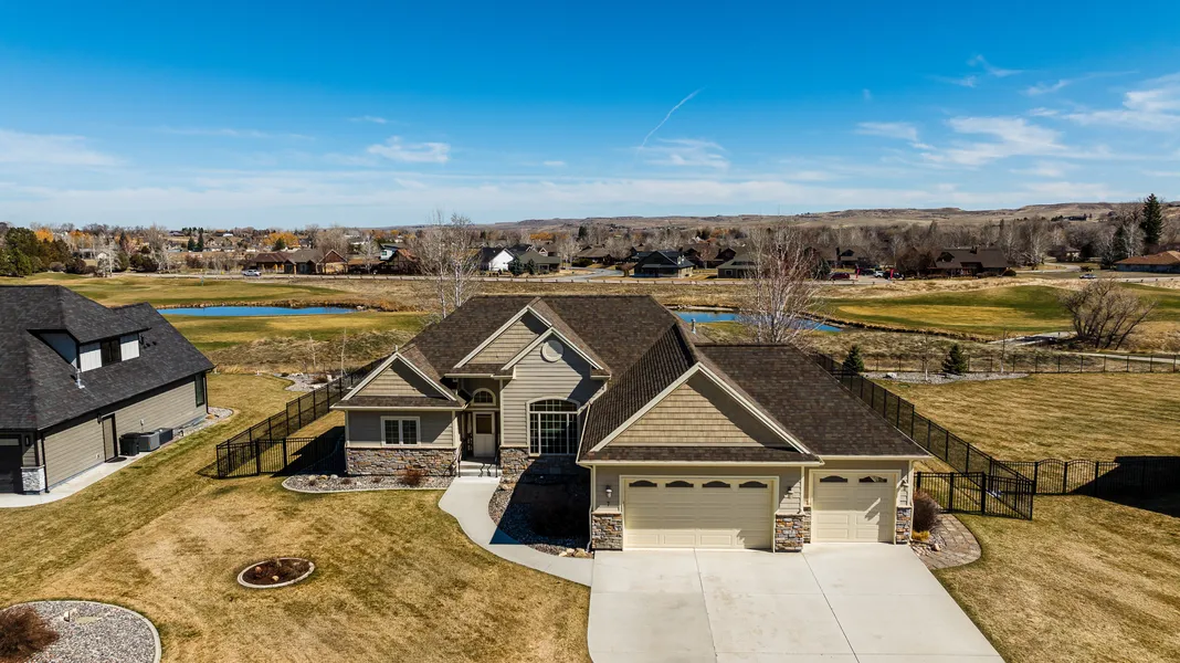 Set on a quiet street, this beautifully maintained ranch-style home offers sweeping Bighorn Mountain views and backs to the signature Par 5 ''Stag 3'' hole—complete with serene views of the green and pond. Inside, enjoy a spacious open floor plan with a split-bedroom layout, featuring rich Oak wood floors, high ceilings, and large windows that frame picturesque views in every direction. The kitchen boasts granite countertops, a new cooktop, and a cozy dining area—perfect for everyday living and entertaining. Recent upgrades include a new fireplace, fencing, cooktop, and garage doors to name a few. The backyard is professionally landscaped and designed to enjoy both privacy and scenery. With its ideal layout and premium location, this home is move-in ready and a must-see!
