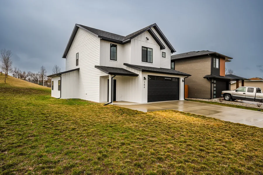 Built in 2021, this home perfectly blends style, functionality, and comfort. It boasts Whirlpool stainless steel appliances, quartz countertops, and an open-concept main level that seamlessly flows into the backyard patio—an ideal spot to create your outdoor living space. The patio even includes a natural gas hook-up, perfect for a cook station or gas firepit. Upstairs, you'll find two bedrooms with views of the Bighorn Mountains, connected by a convenient Jack and Jill bathroom. The primary bedroom features a spacious walk-in closet and an ensuite bathroom for added luxury. Smoke-free and pet-free, this home has been meticulously cared for and feels brand new throughout. Located in a charming neighborhood, it's an excellent opportunity to embrace a comfortable lifestyle.