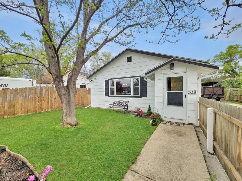 Welcome to your new home! This beautifully maintained ranch-style residence offers the perfect blend of comfort, charm, and functionality. Step inside and be greeted by a spacious living area featuring a gorgeous, statement fireplace—ideal for cozy evenings or entertaining guests. Enjoy the outdoors from your fully fenced front and backyard, and covered patio-perfect for pets, play, or simply relaxing with a cup of coffee. The home's single-level layout provides effortless living, while large windows fill the space with natural light. Some additional features include updated kitchen, windows, HVAC system, electrical, new bathroom with custom stone, and a new 280 sq ft insulated/powered shop with pellet stove. Located close to downtown, this home is a true gem.
