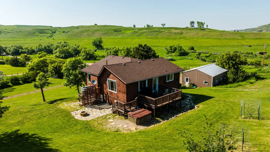 Located just under 20 minutes from downtown Sheridan, this picturesque Meade Creek property perfectly captures the essence of Wyoming living. Set on 35 fully fenced acres, the land offers the ideal blend of privacy, space, and utility, making it a standout choice for those seeking a small ranch setup, recreational retreat, or rural lifestyle. The two-story country home features 3 bedrooms and 2.5 bathrooms, designed for comfort and functionality. The exterior is beautifully framed by mature trees and low-maintenance landscaping, complete with a patio, built-in firepit, and a fenced garden. Steps from the home is a detached two-stall garage offering convenient parking and additional storage. The property is well-equipped for livestock with a loafing shed and an impressive 3,840 sqft. Pole barn. Half of the structure contains a fully insulated 40' x 40' workshop, heated by a coal-burning stove, ideal for year-round use. The other half is configured as a barn, ready to accommodate horses, cattle, or other animals. Whether you're an equestrian, hobby rancher, or simply looking to enjoy wide open spaces with scenic views, this property delivers both practicality and Western charm in one exceptional package.