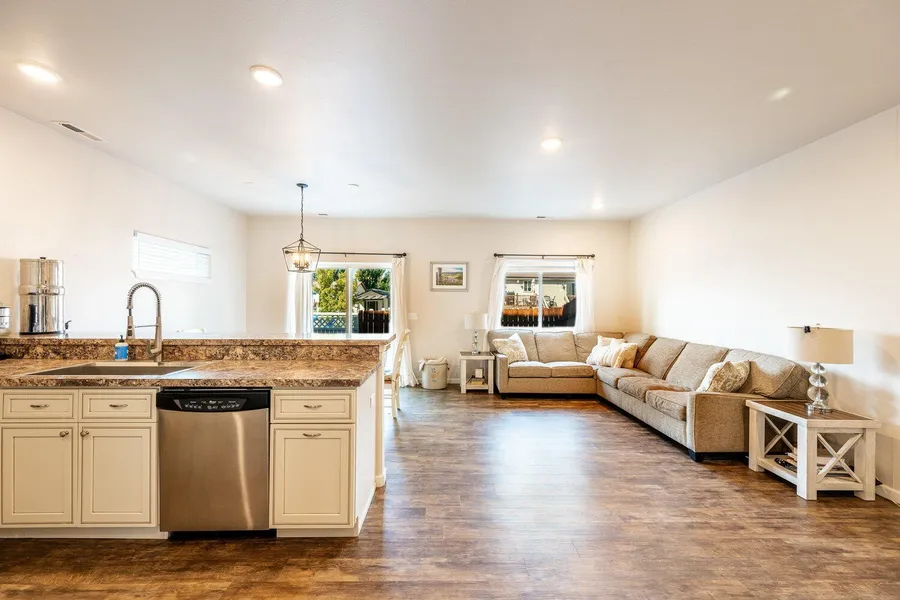 Affordable housing is here. Welcome to this 3-bedroom, 2.5-bath townhouse perfectly located near both an elementary and middle school, just steps from scenic walking paths and only moments from the breathtaking Big Horn Mountains. The main level features a bright living room, beautifully designed kitchen, and dining area ideal for entertaining. Upstairs, a second living area creates the perfect space for kids or guests to gather. The primary suite includes a walk-in closet and en-suite bath. Additional comforts include central heating and air conditioning, plus a one-car garage and two parking spaces. The backyard is fenced. HOA covers water, trash, lawn care, and snow removal--helping to lower utility costs and simplify maintenance.