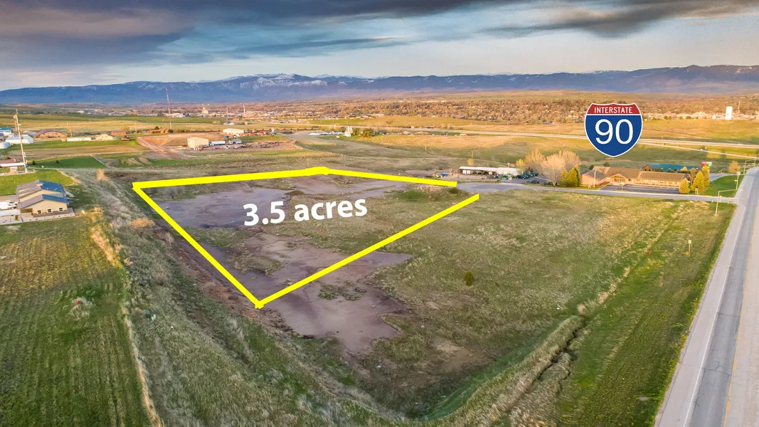 Amazing visibility for your business! Located on east 5th street and less than A1/4 mile from Interstate 90, this shovel-ready 3.5 acre B1 lot offers incredible mountain views and has available: public water, public sewer, natural gas, and electric. With the Rock Stop convenience store and gas station one block west and the Comfort Inn to the east, this lot has high traffic potential and visibility from a busy I90 interchange. All measurements are approximate.