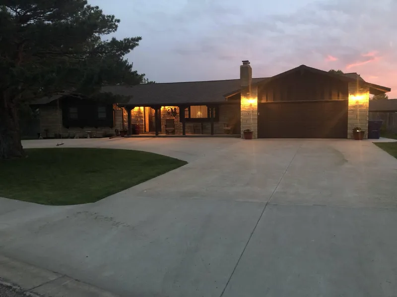 Just listed is a gorgeous 3 bedroom/4 bath home with stone exterior in Goodland, KS. This well-built ranch-style home with half-circle drive sits beautifully in the Northeast part of Goodland. Lots of room for vehicles, lawn equipment, and even small farm accessories with an attached 2-car garage, good-sized outbuilding/workshop with automatic door opener as well as a garden shed. Plenty of space to enjoy or entertain in your backyard with a full privacy fence and patio. The lawn is in tremendous shape making this home ready to enjoy from the moment you walk-in.