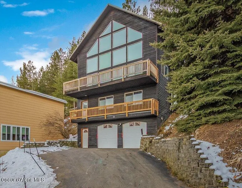 Nestled above the charming town of Kellogg, this beautifully appointed multi-story chalet-style home offers sweeping views of the area and surrounding mountains. Also included are two neighboring vacant lots with development potential. Huge added value. With 4 spacious bedrooms, 3 full baths, and multiple living areas, this home is designed for both comfort and functionality. Featuring two gas fireplaces, a loft, a second kitchenette and dinning area, it is ideally suited for its current use as a highly successful vacation rental. Extensive decking and large windows create an inviting atmosphere, providing the perfect setting for enjoying the four season scenery. The vaulted ceilings and two cozy fireplaces add a sense of grandeur and warmth. The open-concept great room is perfect for entertaining, and the interior balconies and a spiral staircase enhance the home's unique character. Rec...