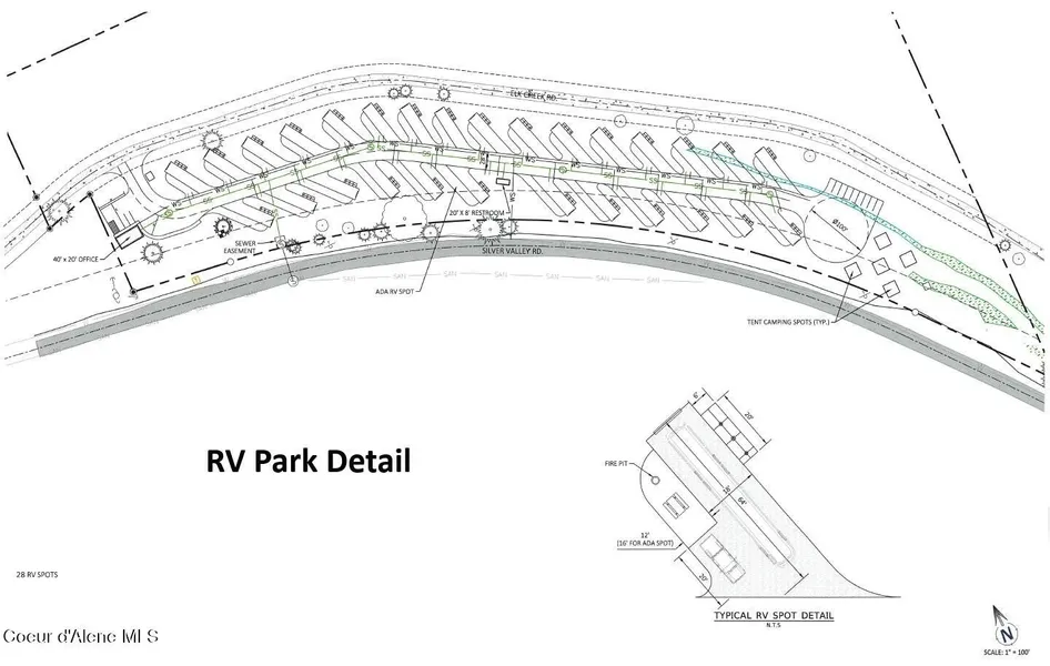 RV Park, ready and waiting to go! Designed and permitted to support 28 RV Spaces or change things up and put in 30 Tiny Homes. Sewer, Power and Water at the property. In the heart of Kellogg, 10 minutes from Silver Mountain or historic Wallace. An Hour to Spokane Airport.