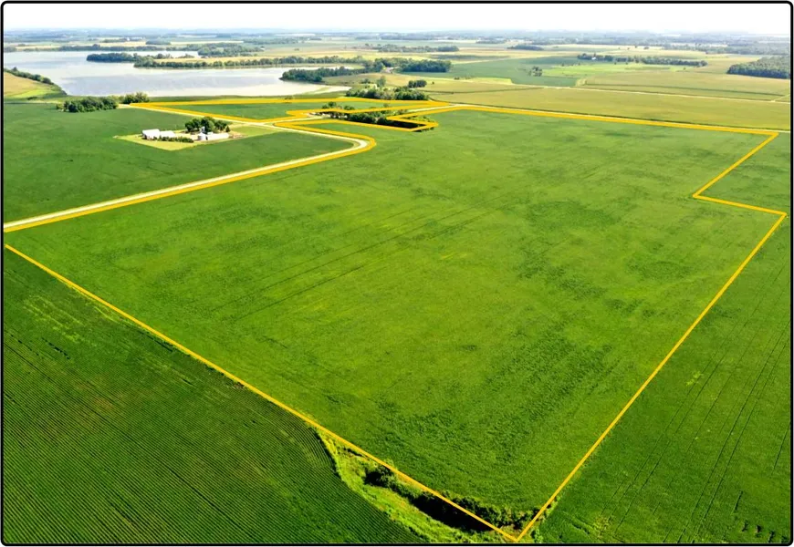 This farm includes drainage from County Ditch 26 along with private outlets and has multiple road access points.