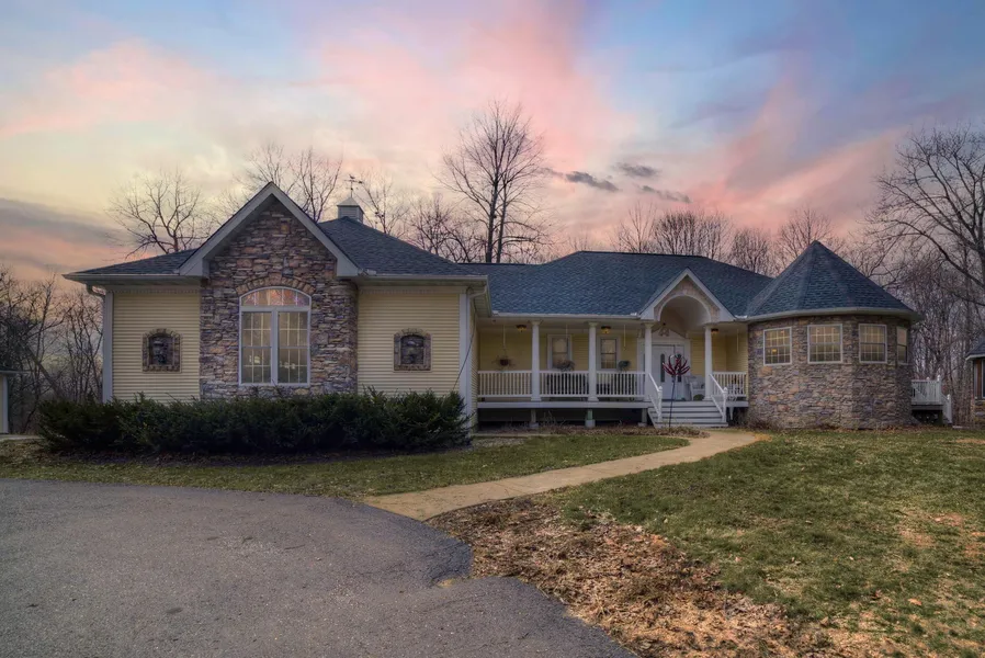 Stunning, custom built one story walkout home on a secluded 2.1 wooded acres just mins to Hwy 212. Includes 1 BR apt in LL w/ private entry. Additional 28x54 building with 2 car garage, kitchen, bath, office or living space & two private rooms could be used as bedrooms. You will love the main level owners suite complete with luxurious bathroom, walk in closet and a private balcony. With gleaming hardwood floors throughout, spacious living areas, and a spectacular kitchen, this one has it all! This expansive lot will become your own private oasis lined by mature trees & abundant wildlife, offering the perfect spaces for relaxing & entertaining both inside & out.