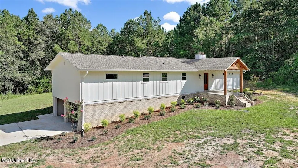When you walk through the front door, you'll be greeted by a spacious living room featuring a cozy fireplace, which flows seamlessly into a lovely dining area and an open, modern kitchen. The kitchen is a chef's delight, complete with a large island that includes a sink, granite countertops, custom-built cabinets, and a wall oven. Adjacent to the kitchen is a charming breakfast room, perfect for casual dining. You'll also appreciate the convenience of a large mudroom and a spacious laundry room with built-in storage. The primary suite is generously sized, offering a luxurious retreat with a huge walk-in closet, double vanities, a custom-tiled walk-in shower, and a soaking tub. The master closet even connects directly to the laundry room for added convenience. The home includes three additional guest bedrooms. Two of these bedrooms are spacious and share a hall bath with a large vanity and a tub-shower combo. The third guest room serves as a true guest suite, complete with its own private en suite bath and a spacious closet. Outside, you'll find a covered porch perfect for relaxing evenings, as well as a patio area ideal for enjoying sunny days. Situated on a 3.6-acre corner lot, this home is essentially brand new with all new systems and finishes, ready for its new owners to move in and enjoy!