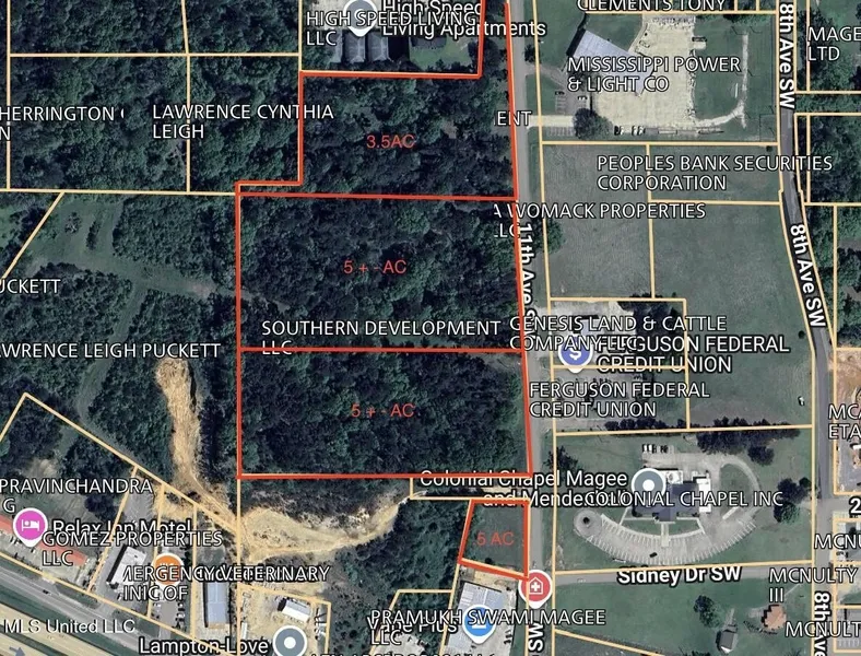 Commercial lot available subject to survey, 3.8 + - acres on 11th Ave SW Magee, great visibility even to Hwy 49 directly across from Walmart traffic light, traffic count at last was in the range of 36K a day at this traffic light. Also 11th Ave is one of Magee's main cut through road to the down town area. Great opportunity!