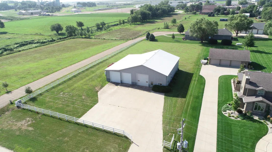 General Description of Property: This property is located in the Northeast side of Rock Valley, IA and offers the opportunity to purchase a 0.90+/- acre property with an approx. 58ft x 64ft insulated building, which was built in approx. 1992, located on a hard surface road (17th St)! The building on the property is insulated and a portion of the building is heated! This building is divided into 4 separate bays with each having its own separate overhead door access! The main bay is approx. 34ft x 47ft and is heated and includes an approx. 11 x 17 area which includes the office, restroom & a mechanical room. This bay also includes a walk in door and an approx. 11ft wide x 12 1/2ft tall overhead door! The South bay is approx. 11ft x 64ft and includes a walk in door and a 10ft wide x 9 1/2 ft tall overhead door and a sliding door access to the main bay! The center bay is approx. 12ft x 47ft and includes a 9 1/2ft wide x 11 1/2ft overhead door and a walk door to the main bay and East bay! The East bay is approx. 17ft x 47ft and includes a 11 1/2ft wide x 12ft over head door and a walk door to the center bay! The main bay area and office/restroom space is heated by a Lennox Pulse gas furnace! This building has a concrete approach on the North side and large open grass area to the South of the building! This property is serviced by Mid America and has gas & electric service to the property! This property also is on City water & City sewer! This property is zoned as R1. Any use that buyer desires to use the property for should be confirmed with the City to ensure that it complies with zoning and city ordinances. This is a unique opportunity which is not often available! Make plans today to utilize this property for your own needs by making plans to purchase this property!