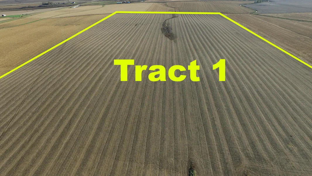 Method of sale: Farmland will be sold with the final bid price x gross surveyed acres. Tract 1 will be sold then Tract 2 will be sold. Tracts will not be combined. Auction to be held at site of Tract 1.