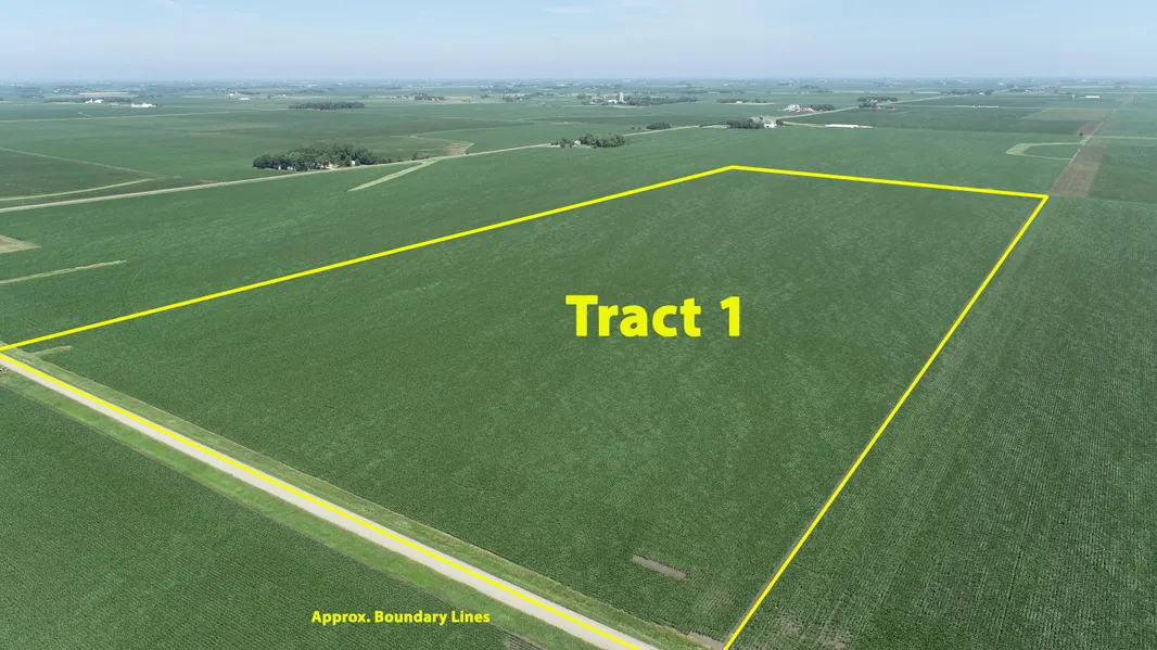 Tract 1 & 2 Location: From NCC in Sheldon, IA go 2 miles West on HWY 18 to Lily Ave. then go 2 miles North on Lily Ave to Tract 2 or from Boyden, IA go 4 miles East on HWY 18 to Lily Ave then go 2 miles North on Lily Ave to Tract 2. Tract 1 is located directly East of Tract 2 and is accessed from 300th St. Auction will be held at the site of the farmland.