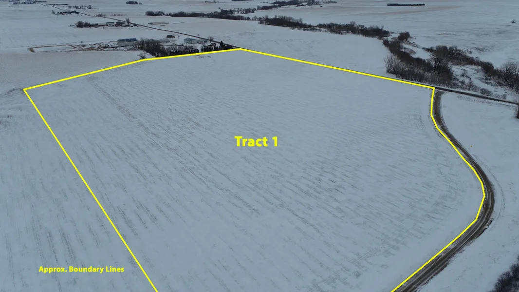 Method of sale: Farm will be sold with the final bid price x the gross surveyed acres. Auction will be held at the site of the farmland. Tract 1 and Tract 2 will be sold in choice method. The top successful bidder of the round of choice will have the option to select one tract or both of the tracts. If the top successful bidder of the round of choice only selects one tract then which ever tract is remaining will then be sold. If the top successful bidder of the round of choice selects both tracts then the auction will be over. Tracts will not be combined in any way.