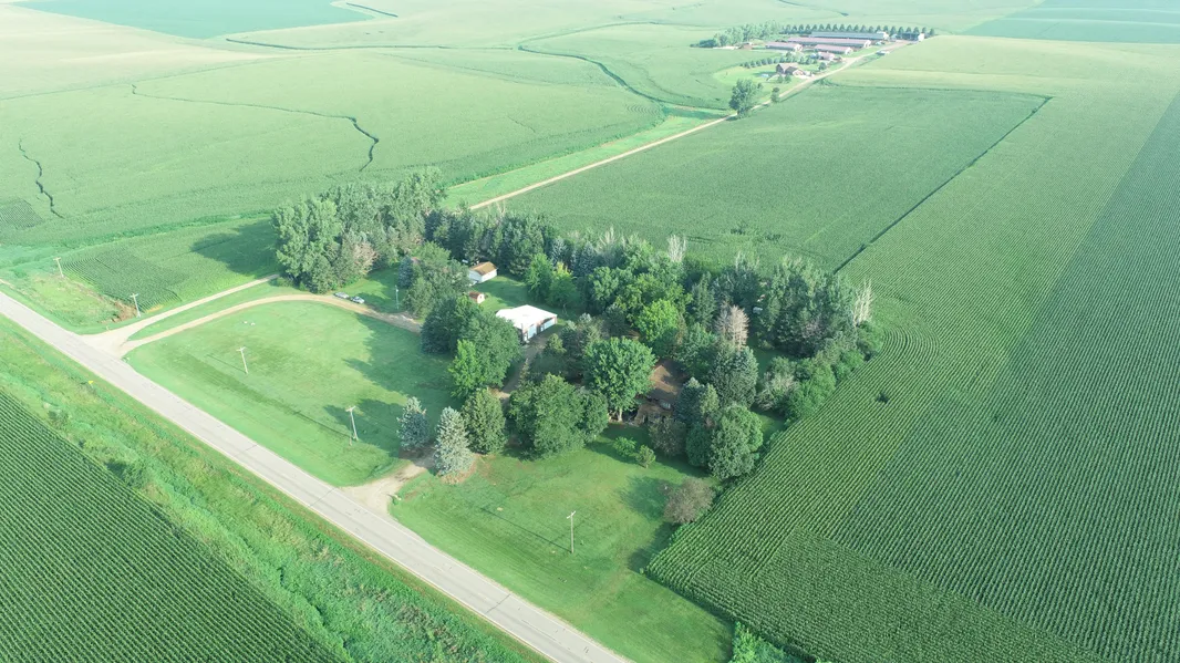 General description of Acreage Site (Tract 1): This is an outstanding opportunity to purchase a 5.68+/- acre acreage site centrally located between Rock Valley, IA & Inwood, IA and only minutes from the South Dakota border and state recreational areas! This property features a ranch style home which consists of 2130 square feet on the main floor and large 24 x 28 double attached garage. The main floor of the home features an open kitchen with custom oak cabinets which will include all of the appliances and a large dining area perfect for gatherings, a main floor bathroom with shower and whirlpool, and a large primary bedroom with its own private deck access, as well as a spacious great room and a family room, each with its own cozy propane fireplace, ideal for relaxing and entertaining The finished basement offers four additional bedrooms, a large family room, and a kitchenette, making it a versatile space for family or guests. Enjoy the wrap-around wood porch and gazebo for leisurely outdoor moments. This home was built in approx. 1978 and has an asphalt roof and cedar siding and has an elec heat pump and electric heat and central a/c. This property also has two 500 gallon propane tanks which are owned and will be included with the property. The property also includes multiple outbuildings including a 40 x 48 machine shed which is partially heated, a 17 x 40 cattle shed, a double 24 x 24 heated detached garage and a 1990 model 16 x 80 mobile home which has 3 bedrooms and 2 bathrooms which has been leased by the current owner adding potential income or additional space. This acreage site is on rural water and also has a well for an additional source of water! This property is also on REC elec! This property offers endless opportunities being located on a hard surface road and having plenty of space and a large well established grove offering excellent privacy! The septic system on the home will be exempt from inspection due to a transfer from an estate. Dont miss the opportunity to bid on this exceptional acreage at auction! Make plans today to attend!! If purchased in conjunction with Tract 2 this would make an outstanding executive property with over 20+ acres!