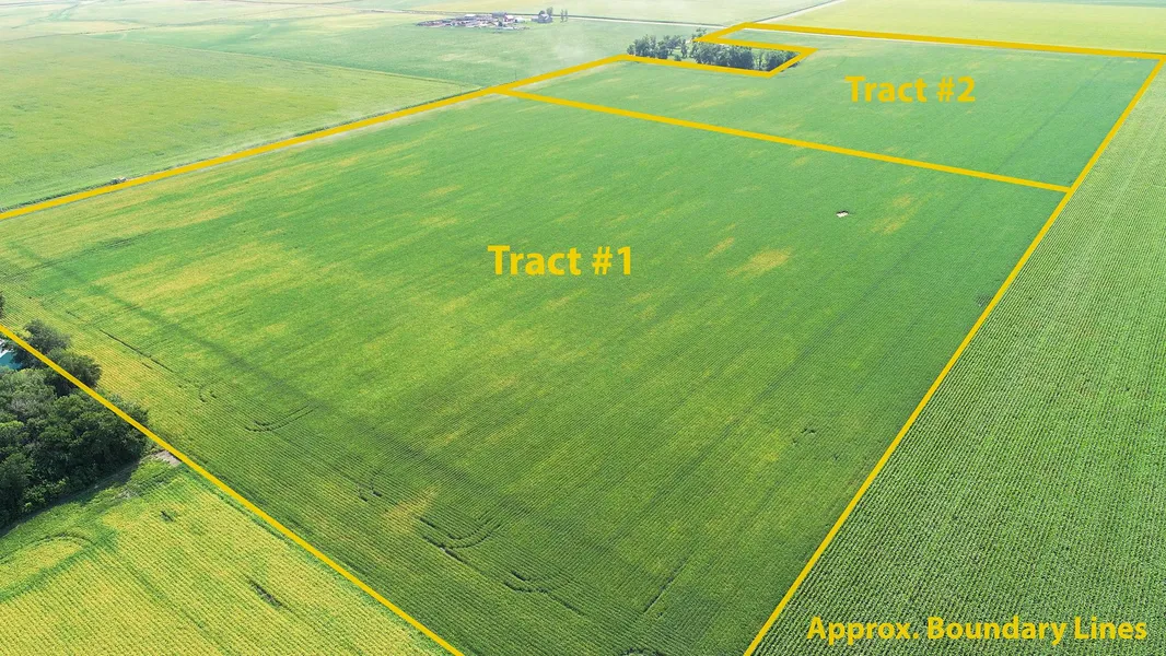 Location: From the North Edge of Sioux Center, IA go North on US HWY 75 for 4 miles to 340th St., then go 3/4 Mile East on 340th St. to Tract 2. Tract 1 is directly North of Tract 2 and is accessed from Harrison Ave. OR from Caseys In Hull, IA go South on Hickory Ave for 2 miles to 340th St. then go 1 1/4 mile West on 340th St. to Tract 2. Tract 1 is located directly North of Tract 1 and is accessed from Harrison Ave. Auction of the tracts to be held at the site of the farmland.