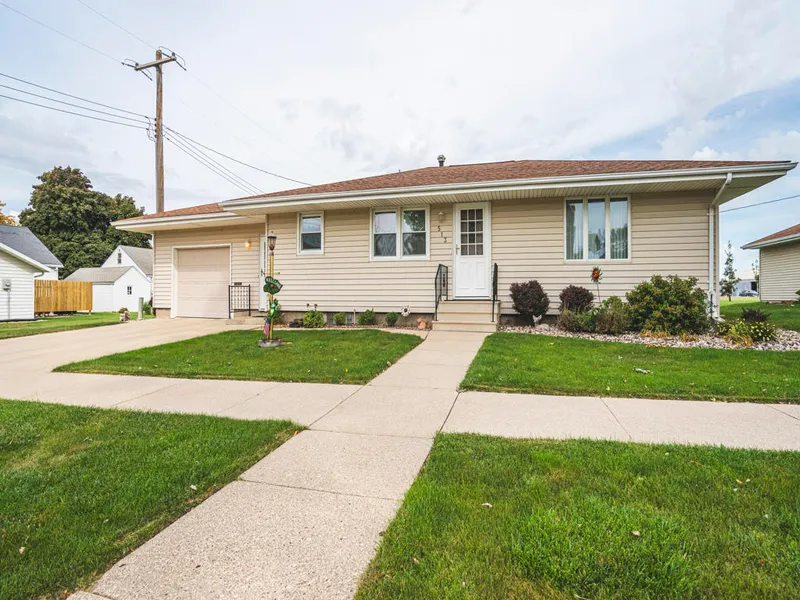 Looking for a cozy 3 bedroom home in a great location, "I have found it for you"! This property is in Granville Iowa an consists of a 1,120sq. ft. ranch style home. This home is remarkably clean with a combination kitchen/dinette with all appliances included. The amenities of this home areas follows: nice sized living room, two bedrooms, full bath, large laundry room with washer and dryer and 1 car attached garage. The basement consists of a bedroom with an egress window, family room, half bath, a large mechanical room with newer hot water heater, newer boiler, rented water softener and RO system. There is a cistern with a pump and pressure tank in the basement but this unit has not been used for a few years. Outside of the home has vinyl siding, newer shingles, nice vinyl-clad windows and a nice storage shed. Location is prime with open area in the backyard and in the front but the qual...