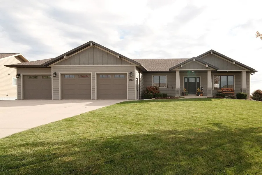 Quality construction, tremendous location and curb appeal, functional floorplan, and an option for an in-home business/office are a few things to love about this new Sioux Center listing! Built in 2016 with ameneties of newer construction, this home offers 1,800+ square feet of living space, along with a full/finished basement and 3+ stall garage! The welcoming front entry greets you into the spacious and open concept living room with electric fireplace, functional dining room with deck access, kitchen with custom cabinetry and island with seating! The main floor is also home to a primary suite with en-suite bath offering tiled walk-in shower, dual vanities and walk-in closet, additional bedroom, guest half bath and laundry! The full basement is finished with a large family room, 2 additional bedrooms, full bath and storage! You won't want to miss the convenient option for in-home busine...