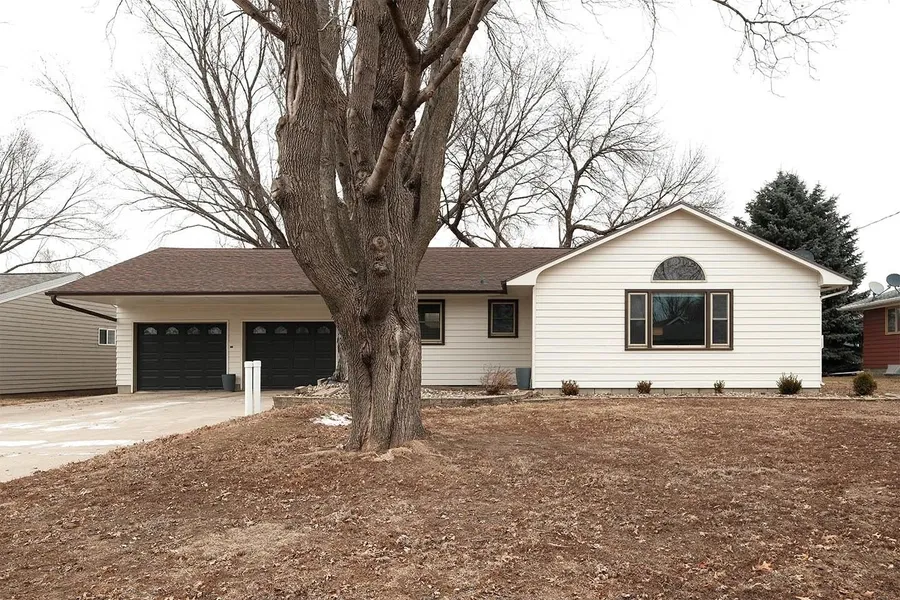 This beautifully updated ranch home in Hospers offers the perfect blend of comfort, space, and functionality. The open and inviting main floor living room features vaulted ceilings and a cozy gas fireplace, ideal for both relaxing and entertaining, along with a functional kitchen and dining space. Two bedrooms, a full bath with whirlpool tub, and abundant storage provide everyday convenience. The partially finished basement expands your living space with a bathroom, laundry area, living room, and non-egress bedroom—perfect for guests, a home office, or recreation. An oversized garage (984 sf) offers endless possibilities for hobbies, storage, or additional vehicles. Cozy, charming, and located in a well-established neighborhood, this home is move-in ready!
