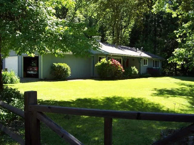SUPERBLY MAINTAINED - This lovingly cared for country home features 3 bedrooms, 1 & 3/4 baths. New hardwood floors. Newer forced air propane furnace and woodstove. Spacious living room with French doors leading to the backyard with fruit trees, garden area, and beautiful forested setting. Attached 2 car garage with storage, wood shed & fantastic newer work shop. The workshop of approx. 30x40 features a slab foundation and office. Situated on approx. 3.1 acres, city water, in ground sprinkler system on a timer, wonderfully manicured front yard and a short walk to the creek & river are just a few of the features that make this home right for you.PRICE JUST REDUCED!