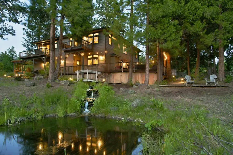 Gorgeous Mountain home on 2.61 acres of trees, fish pond, beautiful landscaping, waterfall and walking trails on the property! This gracious home offers superb attention to detail with premium architectural quality. Two living spaces: main has master bedroom, master bath and 2nd bedroom/office with full bath, views of Mt. Shasta from living, dining, kitchen and deck areas. 2nd level features 900 sqft guest/in-laws quarters with fireplace, kitchen, 1.5 bath and outdoor living space. High-end Rumford fireplace, Trey ceilings, cherry wood floors, maple cabinets, stone counters, tile backsplash w/ custom mural, and interior pine windows to name just a few amenities. Seller purchased adjacent lot in 2019 and selling original and adjacent as one. Property features walking trails, custom pond, walking bridge, water feature and extensive landscaping by Landscaper Design Contractor. Check out the custom entry gate and arbor. Seller also replaced the expansive decking with Elite Sylvania Eco-friendly wood alternative and planted Leland Cedar trees for more privacy. Walk to Lake, Golf resort and Restaurant...A must see! Call for appt now.