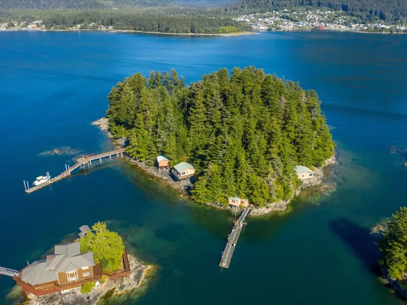 Escape to Quest Island, an extraordinary 4.35-acre private retreat just a short boat ride from Sitka, Alaska. This exclusive, multi-use property offers an exceptional opportunity for various ventures, whether you're envisioning a luxury Airbnb destination, a fishing charter base, a corporate retreat, an adventure lodge with day tours, or a picturesque setting for weddings and events.