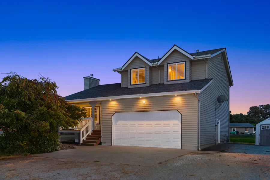 Wide open spaces! Beautifully updated 1512SF, 3BR, 2.5 bath home nestled on 1.84 flat, wide-open acres. Vaulted ceilings on main level create a bright, spacious gathering space incl. living room with fireplace, kitchen, and dining area. Wired speakers inside and out make entertaining a breeze (TV included). A generously sized den is quietly tucked away down the hall past the powder bathroom. Second level bedrooms include large owners suite with full bathroom, two additional bedrooms, and another full bathroom. Large two car garage with built-in shelving and 50Amp RV connection. Minutes from I-5 (just three stoplights!) and in the Burlington School District.