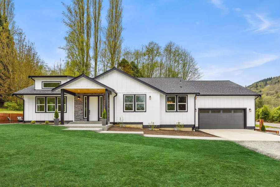 New Construction on shy 5 ACRES offering privacy + breathtaking views without CC&Rs. Enjoy sound of creek while relaxing in enclosed courtyard. Inside enjoy open concept great room w/ vaulted ceilings offering boundless natural light. Relax by cozy gas fireplace enjoying quiet views. Island floor-to-ceiling cabinet kitchen for entertaining. French doors on den/office space offer private workspace. Enjoy private escapes in master ensuite with freestanding bathtub. EV port garage has hobby/shop space. RV parking. Open pasture perfect for horses. In coveted Conway school district. Min from I-5, Lake McMurray and Lake Sixteen. Back on market / Buyer own home failed to sell. Ask about Sellers Closing Credit for LOW interest rate of 5%. Buydown