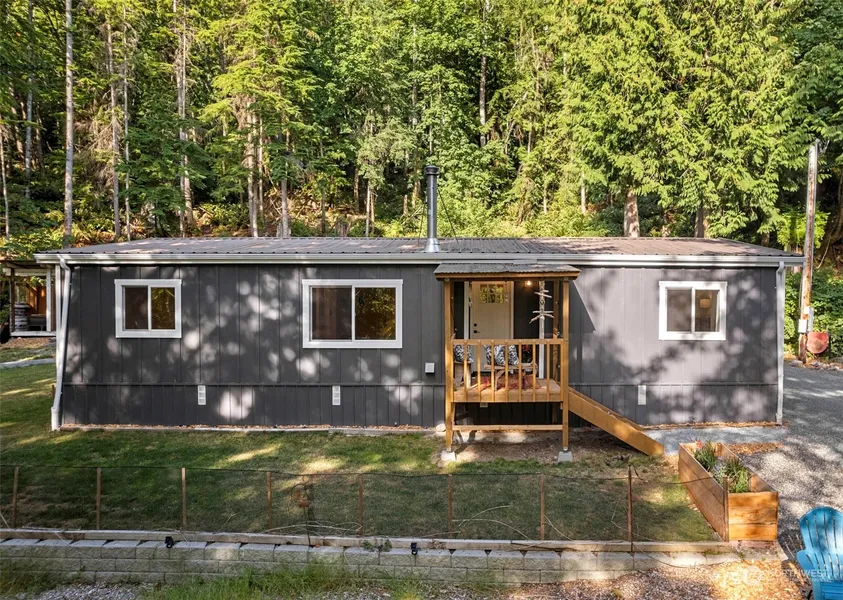 Welcome to this secluded renovated home overlooking a serene 2+ acre pond in beautiful Bow. The open floor plan with vaulted ceilings allows plenty of light throughout. Improvements include new electrical panel with outlets, lighting, exterior & interior paint, siding, exterior doors, interior door hardware, renovated baths and kitchen with newer double pane windows throughout, and wood stove. This property also includes an insulated cedar (milled from the property) board and batten shop (approx. 12x10) with vaulted ceilings attached to a tall carport. A full RV hookup (electric, water and septic connection) is located just next to the shop with plenty of parking both in the driveway and behind the home with a long gravel path.