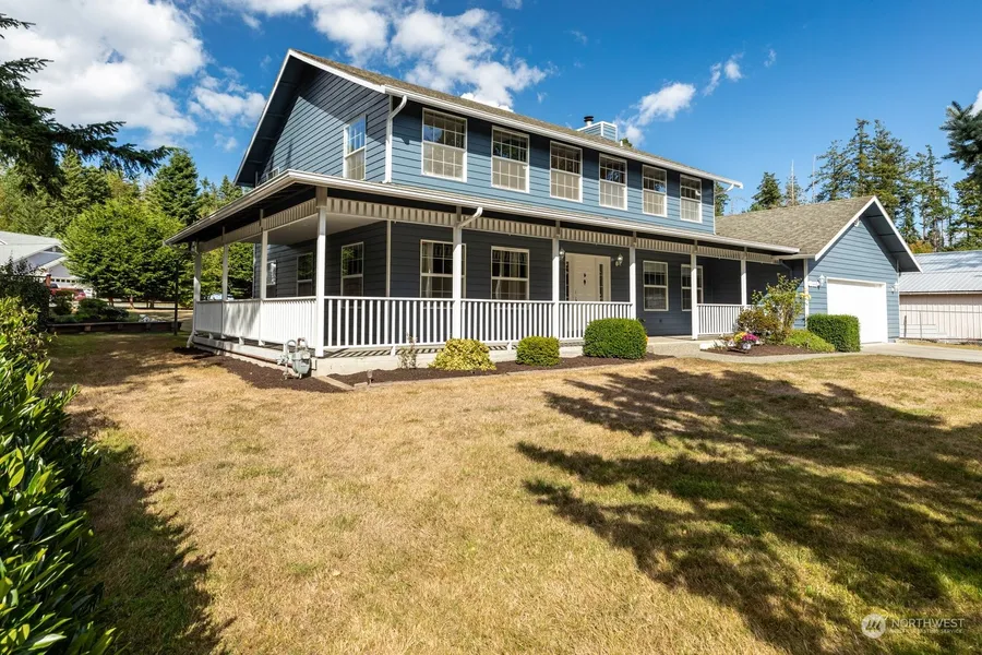 HOME for the HOLIDAYS! 1/2 ACRE+ lot w/ Plenty of ROOM for ALL! Thoughtfully laid out 4 BDRM floorplan offers a huge wrap-around porch, perfect for relaxing, entertaining & Holiday decorating! Formal Living & Dining room, Kitchen w/eat-in area, Family Room w/ cozy wood fireplace, Office, 2 Half BAs and LARGE Mud/Laundry room are located on MAIN floor. Upstairs, large PRIMARY SUITE w/ walk-in closet & laundry shoot! 3 large BDRMs & FULL bath. EXTRA Large 2 car GARAGE w/ SHOP area (freezer & fridge). Tasteful landscaped level lot has great OUTBUILDING w/Electric power for hobbies/animals/gardening? Move-In-Ready, yet still has opportunities for updates to your own Personal style. Exterior Paint done approx 3 yrs ago. New ROOF installed 10/23.