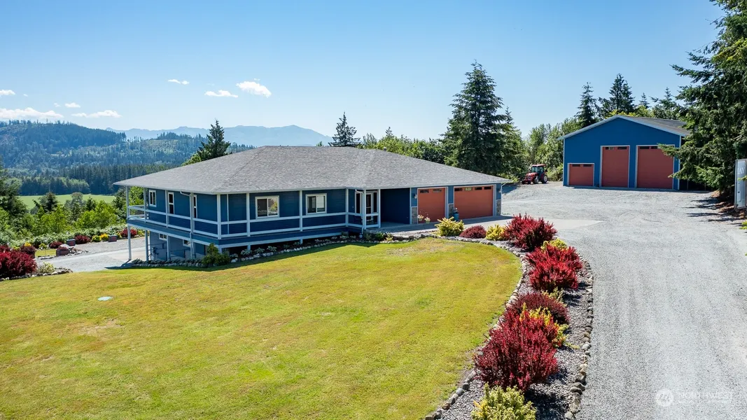 Welcome to your Dream Home with Exceptional views of Skagit Valley and the Cascade Foothills. Rambler with Daylight Basement on 5 acres with mature landscaping, Garden, Fruit trees and plenty of parking. Home has 4 Bedrooms, 4 bonus rooms, 2 separate garages and Safe room Detached 3 bay shop, 2 family rooms, 2 kitchens, Radiant heat throughout, Mini split for AC and a wrap around deck ideal for entertaining or relaxing while taking in the view on your slice of paradise. Both levels could be their own dwelling with separate entrances, kitchens and garages and the beautiful views to enjoy. It's perfect for multi-generational living, Adult family home or separate MIL. This is one you don't want to pass up it has endless possibilities.