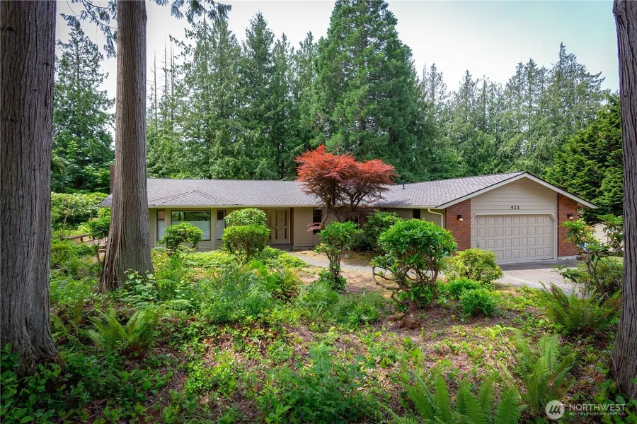 Beautiful NW Contemporary single level home on .61 acre in the Thunderbird neighborhood w/ 50 yr roof. This spacious 4 bedroom 2 bath home will check all the boxes! An open entry leads to great room w/ vaulted ceiling, large windows & cozy gas fireplace. A dining room w/ the option of out door meals on the patio & view of majestic old growth trees. Cozy kitchen leads to living room & wood fireplace, a great spot for gatherings. There's plenty of room for friends to visit w/ 3 guests rooms & 3/4 bath in addition to the primary suite. Your laundry area w/ lots of storage is conveniently located just down the hall. A garage over 500 sq ft & includes an electric car charger. Driveway has room for an RV or extra car or two. Welcome Home !