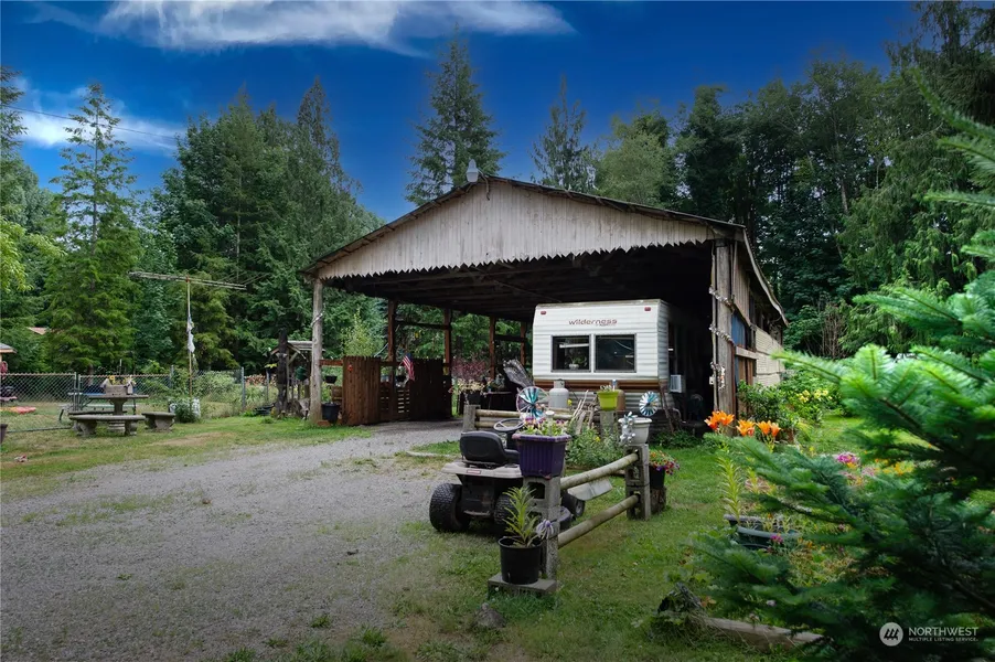 Cape Horn: ADVENTURE awaits you! Fully fenced, 1/3 acre flat lot w/ 30' x 80' RV shelter, water, 3 bed septic, three 30 amp power stations & established landscaping. Property sold w/ RV & outbuildings. Short distance from the Cape Horn Community park, which offers picnic area, basketball courts, playground, restrooms & access to the gorgeous, sandy beach of the Skagit River at Cape Horn for residents & guests only. This is the perfect getaway property w/ lots of fun for everyone year round: Enjoy fishing, eagle watching, hiking, biking, hunting, snowmobiling & different lakes. HOA is $325 annually & covers water, street lights, park & water pump stations. Property & structure sold As-Is. Buyer to verify all info to their own satisfaction
