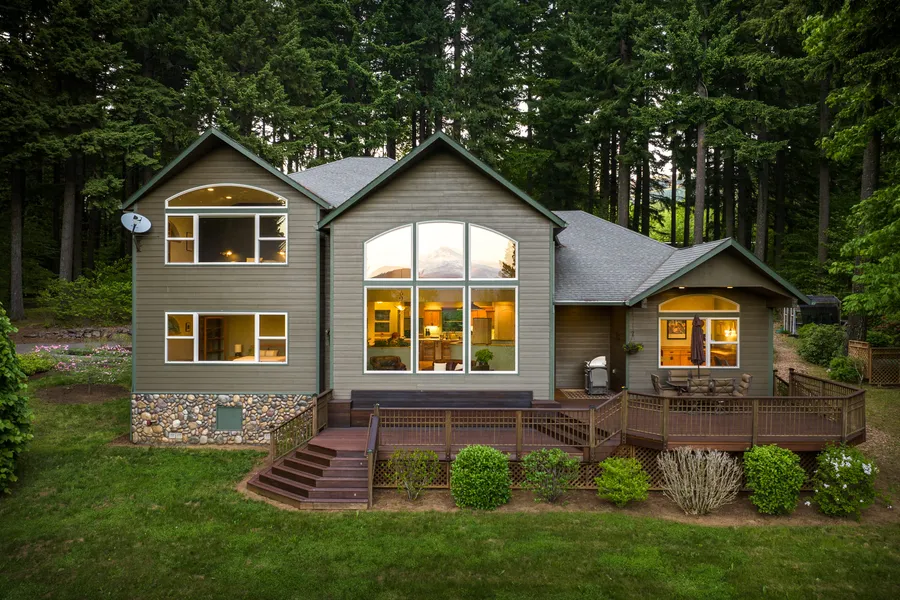 Welcome to your private sanctuary in prestigious Underwood, Washington. This stunning 19.6 -acre estate embodies old-world charm with modern elegance. Designed with meticulous attention to detail, this property showcases the best in living.The expansive grounds feature 11 acres of merchantable timber, 4 acres of prime south facing organic agricultural land, and an enchanting organic orchard with plums, cherries, nectarines, peaches, apples, and pears. A 90 x 35' fenced garden overflows with mature blueberries, raspberries, and raised irrigated beds, all equipped with efficient drip lines. Additionally, a 60' x 40' metal agricultural building offers an office and shop with ample room for hobby and storage. The custom-built home exudes sophistication with exquisite Purple Heart wood finishes. The gourmet kitchen, complete with stainless steel appliances and a spacious walk-in pantry, is perfect for culinary enthusiasts. An adjacent herb garden provides fresh ingredients at your fingertips. Massive picture windows frame breathtaking views of Mt. Hood, flooding the open-concept living spaces with natural light. High vaulted ceilings enhance the sense of grandeur. The large, serene primary bedroom features a luxurious steam shower, creating a spa-like retreat within your home. For those seeking tranquility and privacy, this estate is a dream. The natural ravine and enchanting forest offer ideal settings for peaceful walks and reflection. Every aspect of this home is designed to maximize the incredible views and serene surroundings. This is more than a property; it's a lifestyle! Whether you are a naturalist, an avid gardener, or someone who appreciates the finer things in life, this estate offers a rare opportunity to own a piece of paradise in one of Washington's most coveted locations. Experience the pinnacle of luxury living at this unparalleled Underwood estate, where elegance, privacy, and natural beauty converge to create the extraordinary retreat to call home.