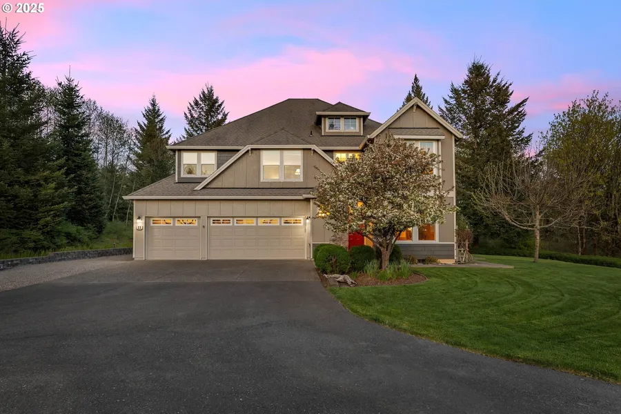 Perfectly situated within the desirable Canyon Creek Estates community, this Garrette Custom Home offers 2.06 acres of natural beauty in a quiet cul-de-sac. The neighborhood is known for its elevated setting, spacious lots, privacy, and proximity to both conveniences and outdoor recreational areas. Inside, more than 3,000 square feet of living space features hardwood floors, high ceilings, and a light-filled loft with southern exposure that works well as an office, reading nook, or creative space. The kitchen is designed with function and style in mind, offering granite counters, double ovens, stainless steel appliances, and a butler’s pantry that makes preparing meals and entertaining effortless. The expansive primary suite includes a fireplace, a large walk-in closet, and a bathroom with a soaking tub and dual vanities. The property’s outdoor spaces showcase the best of the Northwest. Colorful trees, seasonal wildflowers, and a water feature create a picturesque setting, while the sounds of birdsong add to the sense of calm. A spacious wrap-around patio provides ample room for gathering or relaxing, and the detached outbuilding with a concrete slab and loft adds versatile space for storage, projects, or a future studio. There is also potential for an additional shop on the upper portion of the property. This property is conveniently located just minutes from a local market, 20 minutes from Highway 14, and under 40 minutes to PDX. It also provides quick access to the Columbia River Gorge with opportunities for hiking, fishing, and year-round adventure.