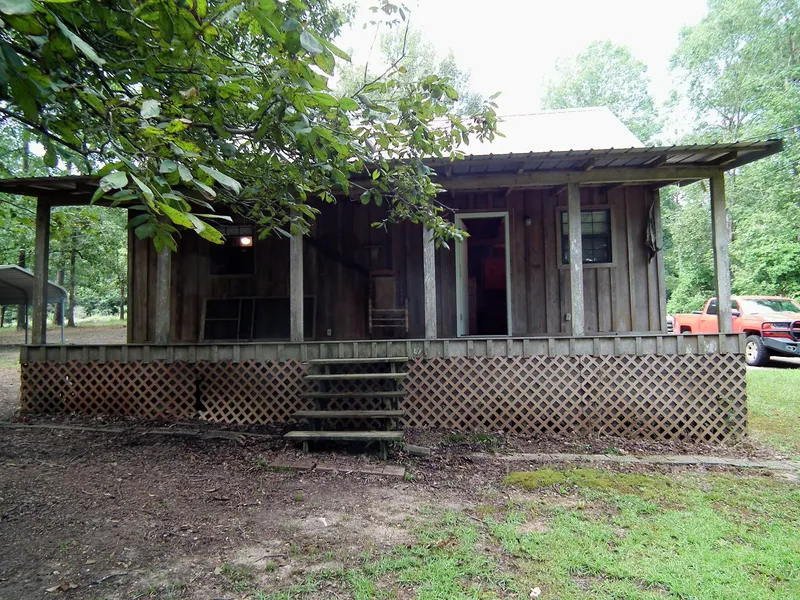 3341 Smith County Road 18, Mize, MS 39116 - 600 +/- sq. ft. Cypress Cabin with 2 bedrooms, 1 bath, kitchen/den area and an 8 foot wide porch on 1.5 +/- acres. In addition, the property comes with a covered shed for parking vehicles and equipment and an enclosed storage shed. Additional 35.5 acres cutover available across CR 18.