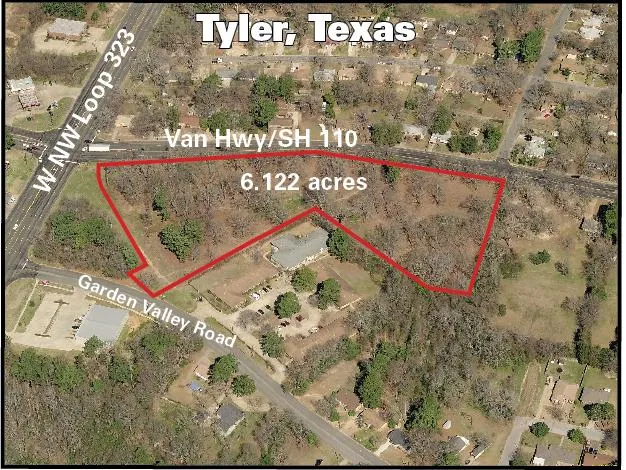 This 6.122 ac CORNER property is located at the southeast corner of WNW Loop 323 and SH 110 on Tyler's west side of town, less than eight (8) miles south of Interstate 20 and less than 5 miles east of the Tyler Pounds Field Airport. It is a very highly-trafficked intersection with traffic counts in excess of 38,000 vehicles per day.