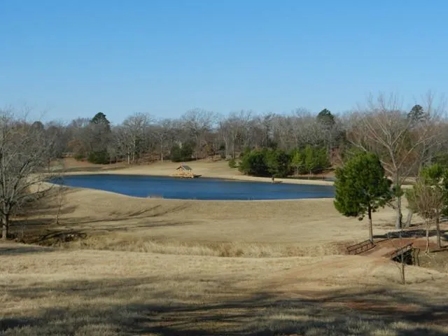 Picturesque 85.37 acres of rolling land comprised of hills and valleys w/ perfect mixture of trees, lakes, creek, woodland meadows, pastures and coastal Bermuda hay fields in an ideal location . Perfect for an exquisite residential development or estate with beautiful bldg sites. About 40% woodlands with many very lg. trees including oaks, dogwoods, hickories, maples, pines, etc. Outstanding water well (215' deep) was completed in 2011. A 2HP pump produces 3 million gallons/month, which flows over a stone waterfall into 2 beautiful constant level stocked lakes (w/pier) & dams covering approx. 4 acres (w/solar charged auto feeder) Year round creek flows through the property with 650' of the creek restored and groomed. Deer, wildlife & birds roam the property - a majority of the woods have been thinned and groomed, w/ some left natural for wildlife cover. Completely fenced w/ automatic ent...