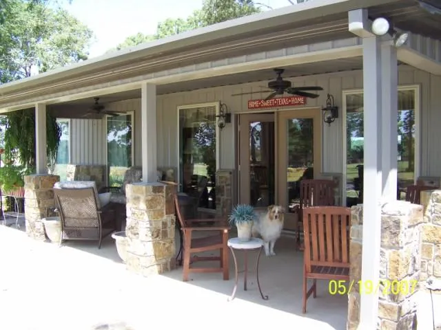 This is a beautiful piece of land with large scattered oak trees over the whole 23 acres. Park like settings with a nice coastal pasture in front. The house sits approximately 1200 feet off of the road in the middle of the land with porches on front and back plus a flagstone patio the length of house. The horse barn/equipment barn is designed with 4 horse stalls and 2 stalls for equipment. There is a large room with doors for feeding into each stall area. The pastures are fenced and cross fenced. Around the house is san augustine grass and lots of landscaping with flagstone bordering the beds. Ceiling fans on both porches help create that breeze you need in the summer to cool you off.